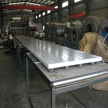 980型瓦愣夾芯板:用于建筑性屋面、屋頂?shù)母魺嵬撸?guī)格有5公分、7.5公分、10分分、彩鋼板厚度0.326-0.5mm。長度定尺生產(chǎn)。