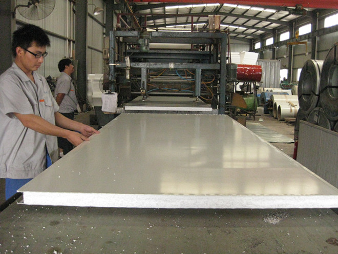 夾芯板也稱復(fù)合板,是由彩色鋼板作表層,閉孔自熄型聚苯乙烯泡沫做芯板,通過上海希明全自動(dòng)化連接成型機(jī)將彩色鋼板成型后,用高強(qiáng)度粘合劑粘合而成的一種高效新型復(fù)合建筑材料。廣泛用于公共建筑、工業(yè)廠房的屋面、墻面和電子、醫(yī)藥、生物化工、食品等行業(yè)以及辦公室的裝飾圍護(hù)、吊頂、門;簡(jiǎn)易活動(dòng)房的圍護(hù)、組合冷庫(kù)、樓頂加層、崗?fù)さ取?/p>