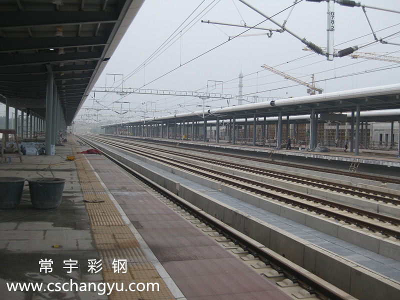 圖為滬昆高鐵湘潭站施工現(xiàn)場 常宇彩鋼實拍